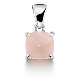 La douce couleur du quartz rose sur ce pendentif habillera délicatement votre buste. La pierre est taillée en cabochon et présente une forme en coussin. L'apparence de la pierre soigneusement travaillée par nos bijoutiers, apporte de l'esthétisme à ce pendentif et le distingue des pendentifs classiques. Le quartz est fixé par quatre griffes qui épousent la forme de la pierre et la monture composée dans de l'argent est parachevée par une bélière à son sommet.