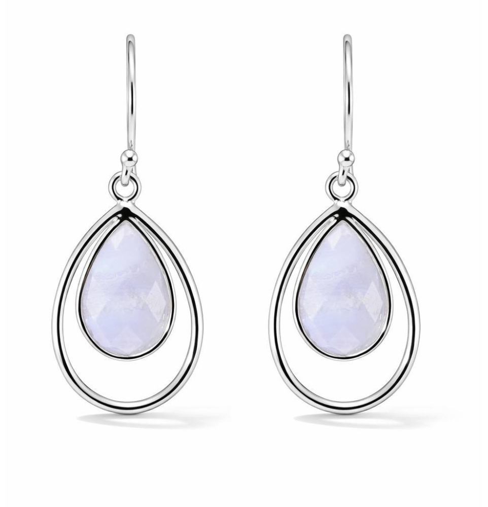 Fabriquées en argent 925, elles présentent de superbes pierres de calcédoine taillées en forme de poire, mesurant 12x9 mm, qui reflètent délicatement la lumière grâce à leur taille facettée.