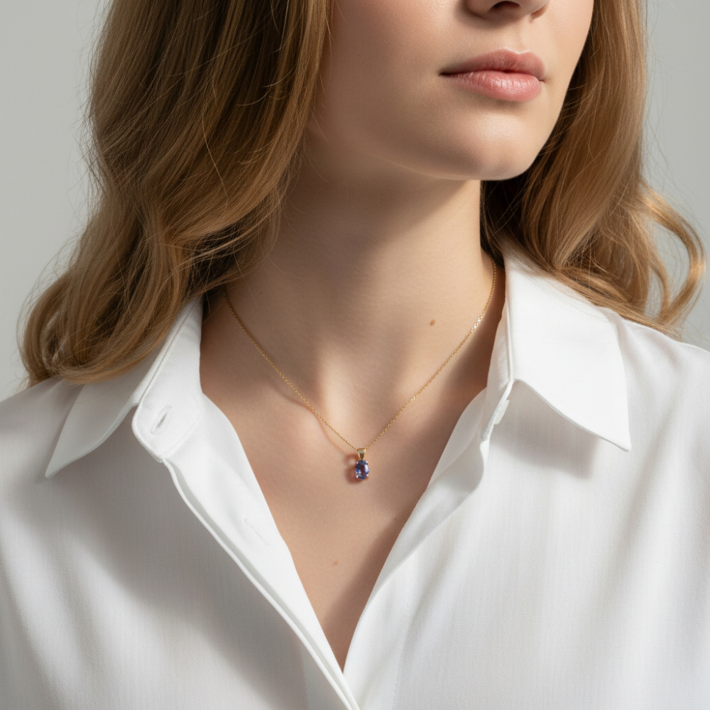 Pendentif en Or Jaune 750 serti d'une Tanzanite ovale de 7x5mm
