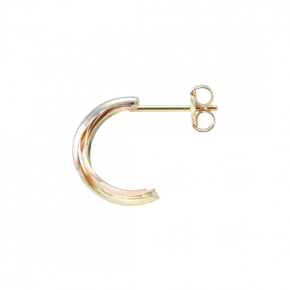 Ces boucles d'oreilles multi-ors séduiront les femmes à la recherche de l'élégance et du raffinement. Elles prennent la forme d'un demi-créole constitué de trois fils différents : le premier en or blanc, le second en or jaune et le troisième en or rose. Ces derniers s'entrelacent entre eux de façon originale. Aux extrémités de joli bijou, on aperçoit un fermoir à poussette belge qui est composé d'une fine tige de métal dans laquelle on introduit une plaque en forme de papillon .