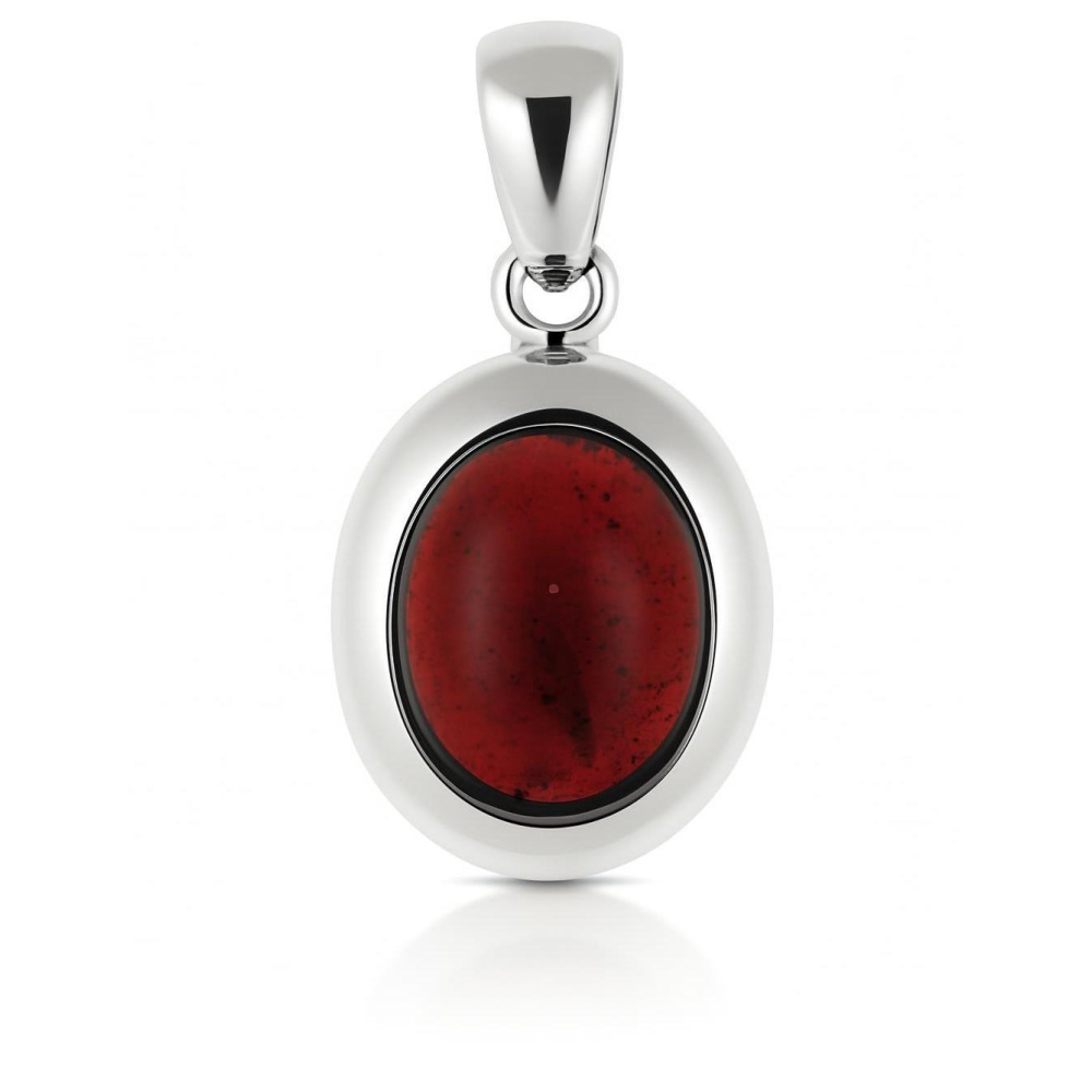 Pendentif Argent 925 Grenat serti d'une pierre de 12x10mm, hauteur totale : 27mm
