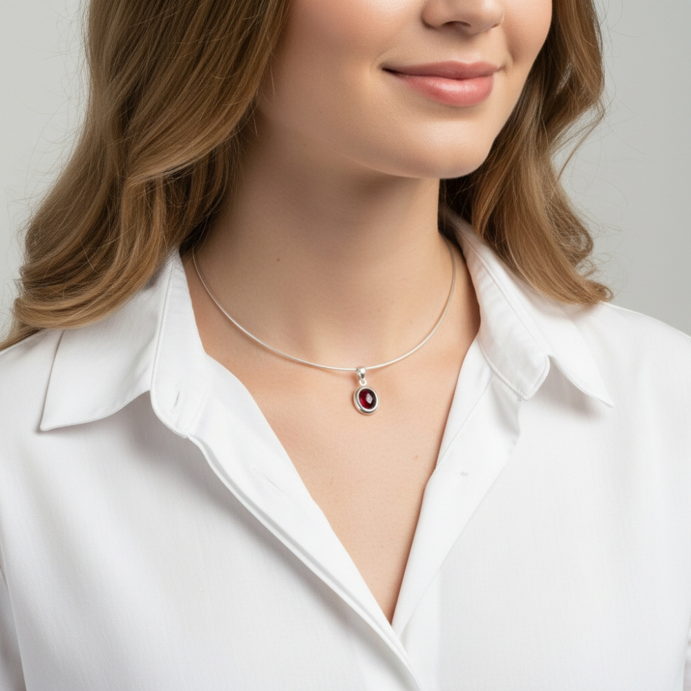 Ce magnifique pendentif rehaussera avec élégance un haut tel qu'un chemisier ou un top. Avec le grenat qui l'agrémente, il insufflera une note chaleureuse à votre allure. La pierre est de forme ovale et montée dans un corps en serti clos. Une monture entoure délicatement ses côtés avec une petite bordure sur le dessus. La bélière est de forme triangulaire avec des bords arrondis, elle passe à travers un anneau fixé au sommet de la monture. La couleur chaude de la pierre s'associe bien avec la monture qui est entièrement en argent.