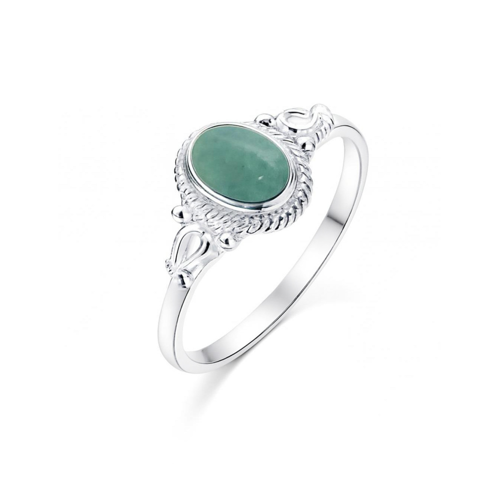 Toute la beauté de cette bague en argent repose sur sa monture finement travaillée. Elle distille beaucoup de grâce et d'élégance grâce aux motifs décoratifs argentés parsemant les deux côtés de l'anneau. Au milieu, on aperçoit une jolie aventurine aux doux reflets verdoyants. Celle-ci est entourée d'un filet de métal précieux doté de rainures symétriques qui donnent un bel effet à l'ensemble. Cette précieuse parure de doigt rehaussera le style vestimentaire de ces dames .