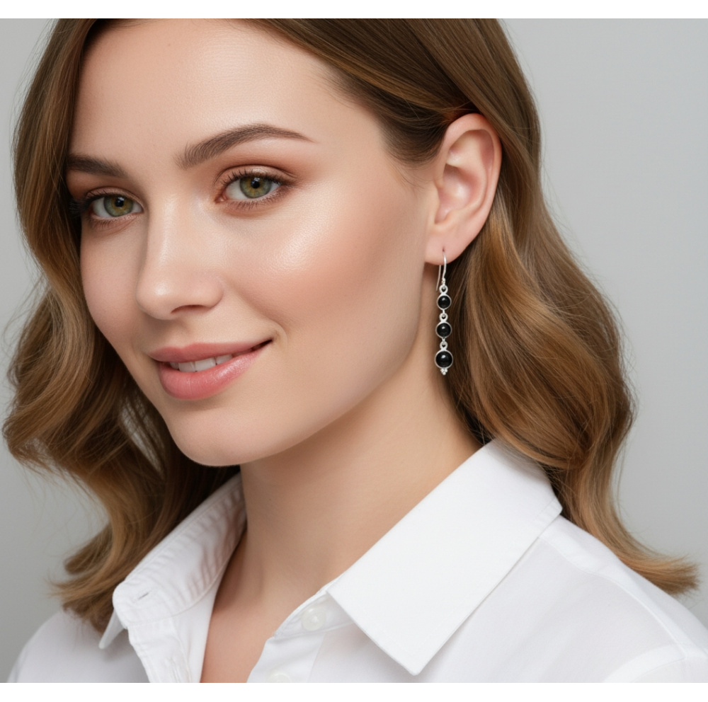 Boucles d'oreilles Argent 925 Onyx serties de pierres rondes de 5, 6 et 7mm de diamètre