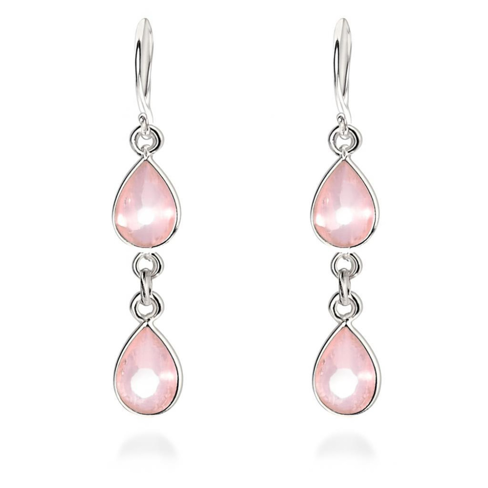 Boucles d'oreilles Argent 925 Quartz rose serties de pierres en forme de poire