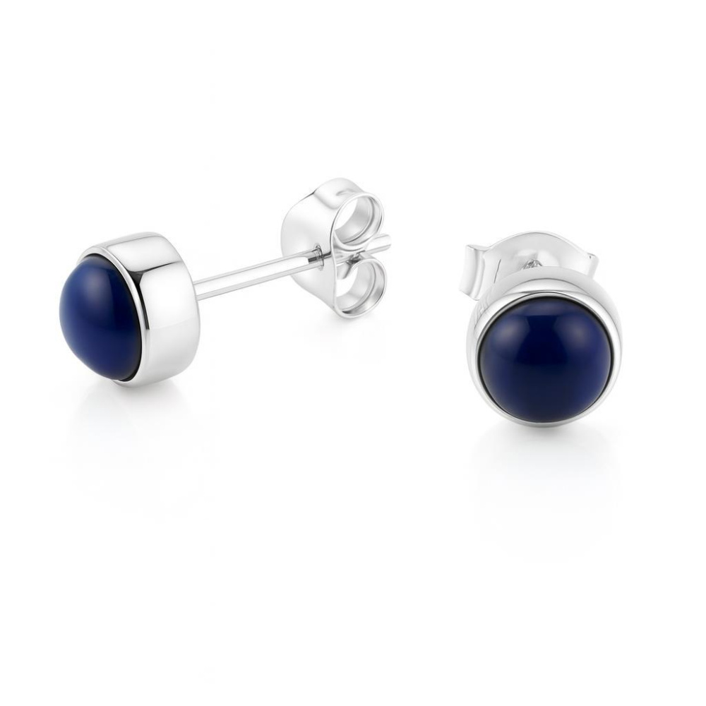 Boucles d'oreilles Argent 925 Lapis lazuli serties de pierres rondes taille cabochon de 6mm de diamètre