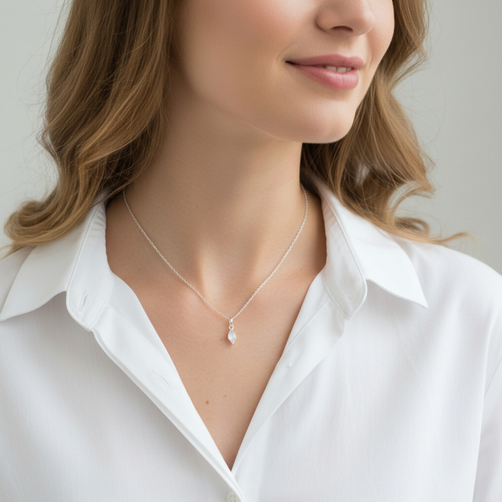 Pendentif Argent 925 Labradorite serti d'une pierre taille poire de 7x5mm
