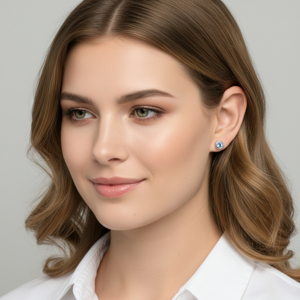 Boucles d'oreilles en Or Blanc 750 serties de 2 Saphirs de Ceylan AAA de 4,5mm de diamètre (2x0,35 carat)