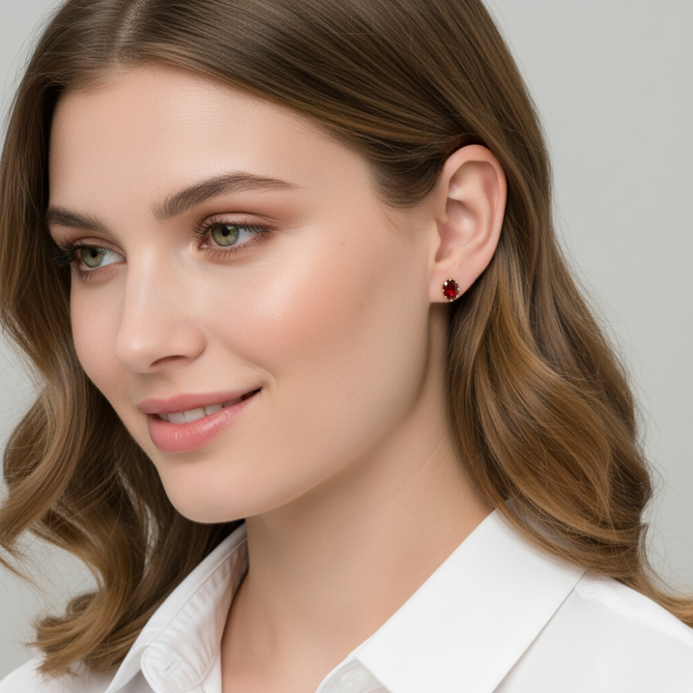Les teints chauds seront mis en valeur avec ces jolies boucles d'oreilles en or jaune. Le doré du bijou serti de grenat donne un coup d'éclat aux visages de ces dames. La pierre fine qui vient discrètement l'embellir révèle une couleur rouge irrésistible. Quand on observe cette pièce de joaillerie, on a l'impression que le chaton forme une sorte de couronne qui maintient en place la pierre. En vérité, ce sont les griffes reliées à la monture qui offrent ce rendu original.