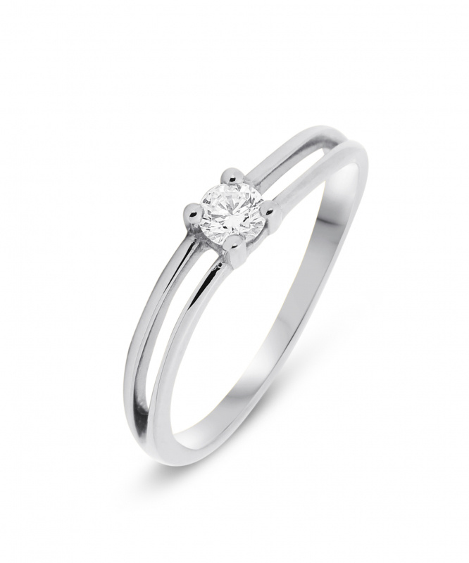 Les envies de raffinement seront forcément comblées par cette bague en or blanc, idéale pour marquer de somptueuses fiançailles. Ce bijou abrite un diamant blanc fixée par quatre griffes. La monture s'ouvrant en deux procure quant à elle un effet léger et aérien à cette parure de doigt illustrant toute la créativité de nos bijoutiers.