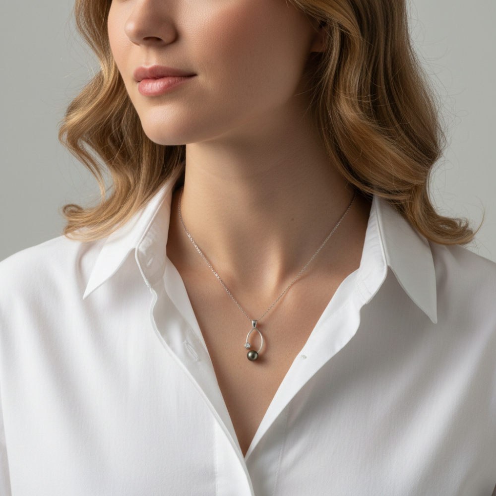 Pendentif Or Blanc Perle de culture de Tahiti et Diamant