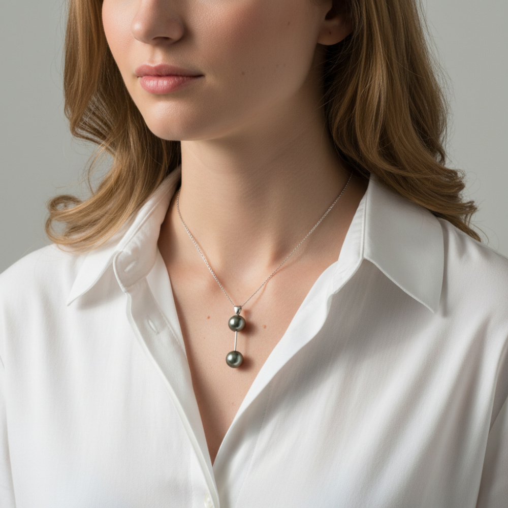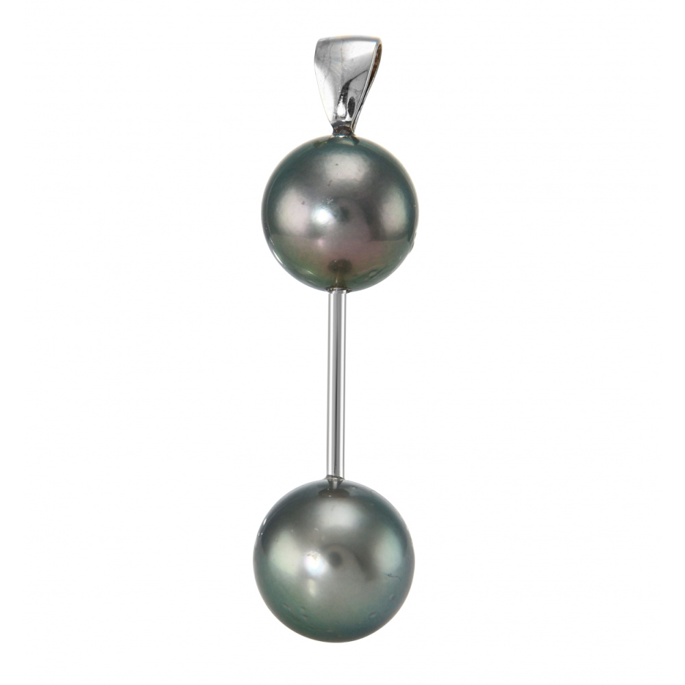 Pendentif 2 Perles de culture de Tahiti en Or Blanc - Ref : 33367