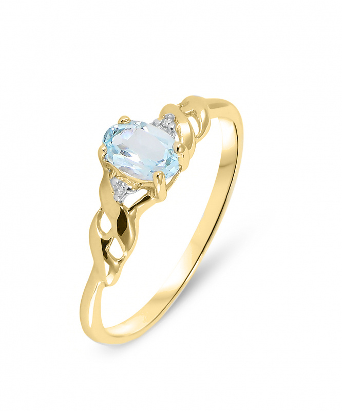 Bague Topaze Bleue Traitée et Diamant en Or Jaune 375