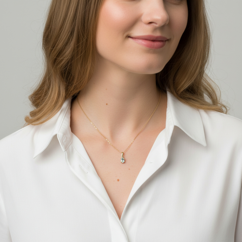 Pendentif Aigue Marine en Or Jaune 375