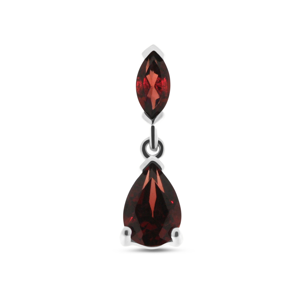 Vous aimerez ce pendentif pour ses lignes graphiques, complètement dans l'air du temps. Il est constitué de deux grenats ingénieusement agencées sur le beau bijou. La première pierre fine taillée en marquise a été fixée par un serti demi-clos sur le haut du pendentif tandis que la seconde pierre plus grande et taillée en poire orne la seconde partie. Le résultat visuel de cette parure de cou en or blanc est captivant .