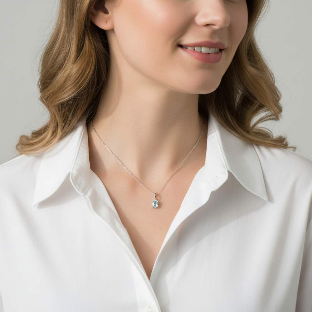 Afin de parfaire un look classe et distingué, vous pouvez porter ce splendide pendentif pour femme. Il a une monture discrète mais jolie, avec une bélière croisée. La topaze bleue de forme ovale qu'elle présente est censée vous apaiser et vous apporter toute l'énergie positive dont vous avez besoin au quotidien. Sa couleur donne un ton éclatant à l'ensemble du bijou. Ce séduisant pendentif constituera un joli cadeau .