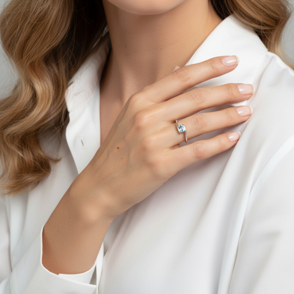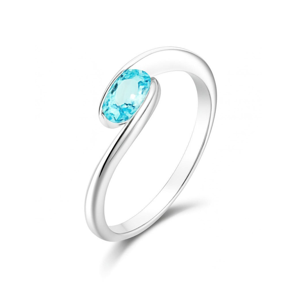 Bague corps croisée sertie d'une Topaze Bleue traitée