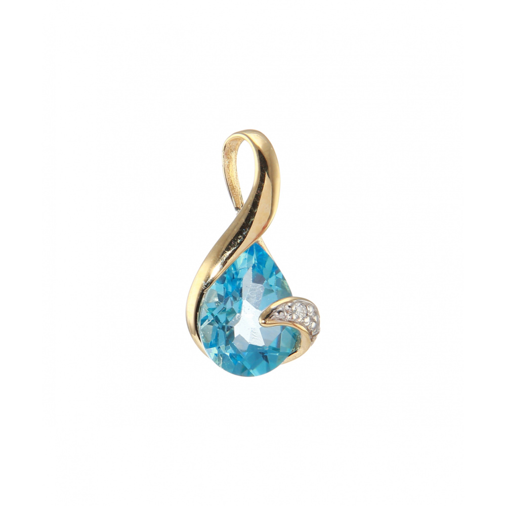 Pendentif Topaze Bleue traitée et diamant en Or Jaune 750