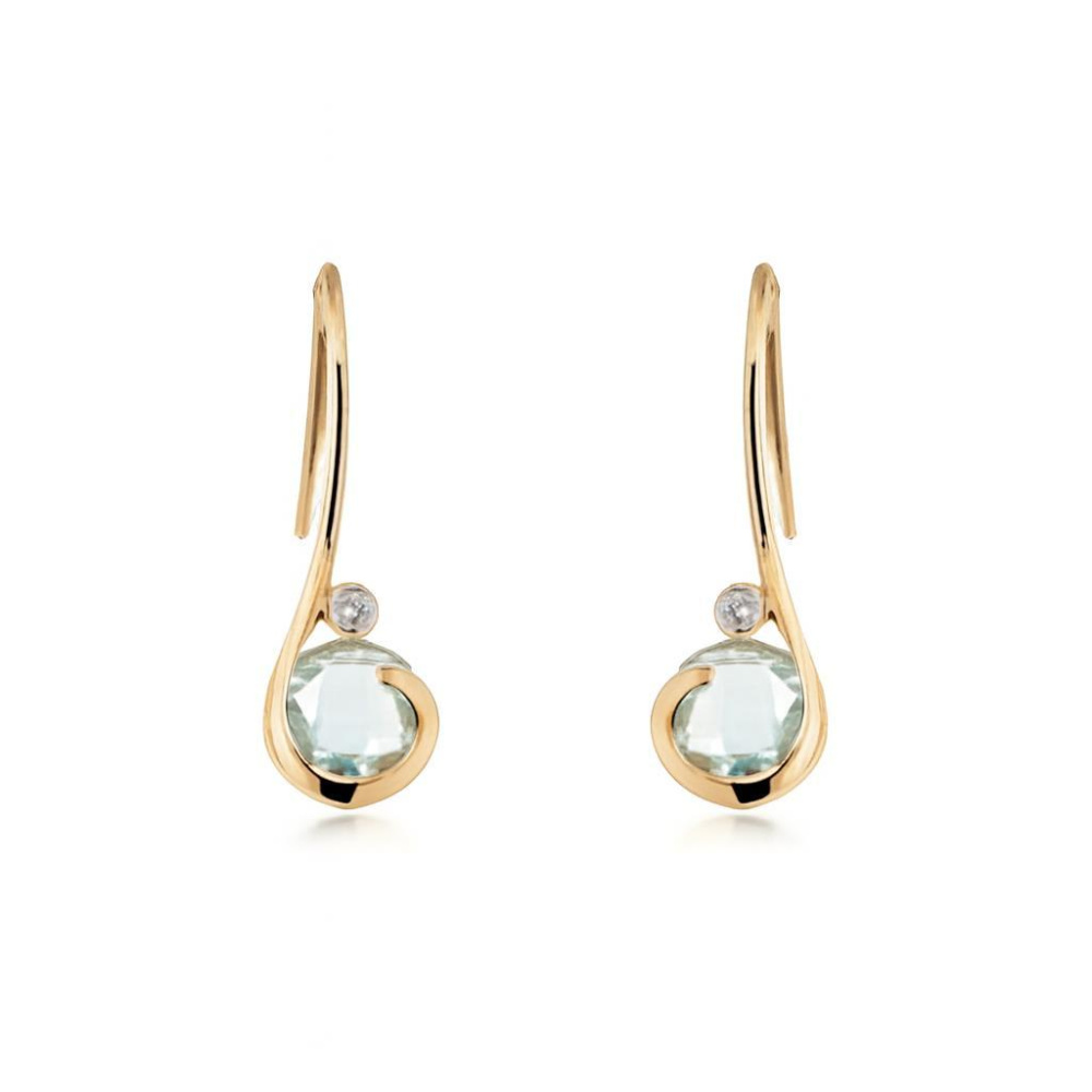 Boucles d'oreilles Pendantes Or Jaune Topaze Bleue Traitée 6mm et Diamant - Ref : 37194