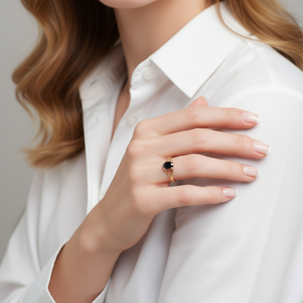 Cette bague en or jaune fera un cadeau de fiançailles parfait. Il est sublimé d'un saphir dont le bleu évoque pureté et sagesse. La monture avec un corps en fourche offre un style contemporain et féminin qui plaira à toutes ces dames. La pierre précieuse de forme ovale et fixée par quatre griffes quant à elle garantirait fidélité et union apaisée .