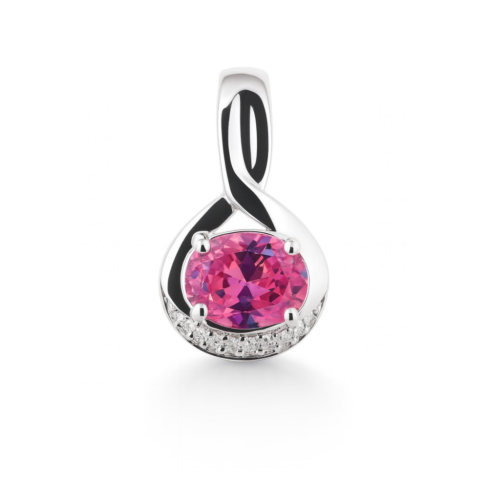Ce pendentif est serti d'un oxyde rose ovale de 9x7mm et de 12 oxydes blancs de 1mm