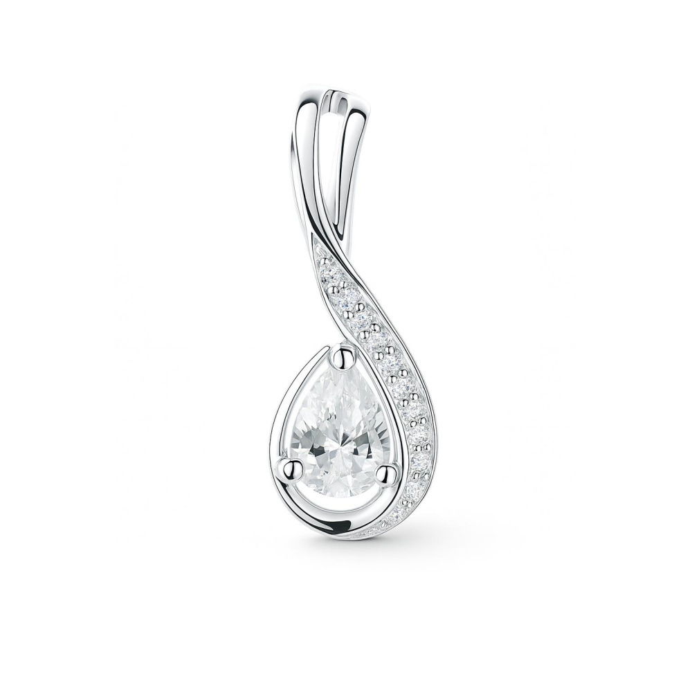 Ce pendentif brillera de tout son éclat à votre cou. Il est constitué par une monture en argent et de plusieurs oxydes de zirconium. La monture présente un design original rempli de beauté et s'articule autour de la pierre principale. C'est un oxyde de zirconium taillé en poire, serti par trois griffes. La monture l'entoure délicatement en présentant une forme entortillée puis elle remonte au-delà de la pierre pour dessiner une bélière. Mesdames, vous apprécierez le beau mariage que forment la monture à la tonalité claire et la brillante présence des oxydes de zirconium.