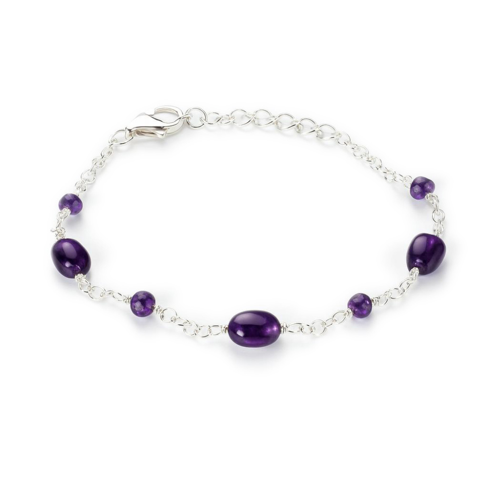 Ce joli bracelet est en argent orné de quelques améthystes. Les pierres décorent avec grâce ce bijou, elles sont fixées par des tiges qui traversent leur corps. Grâce à son design, ce bijou peut se porter au quotidien et s'adaptera à des tenues différentes. Il agrémentera naturellement une tenue de ville. Ce bracelet fera également un beau cadeau, il dispose d'une longueur ajustable pour un réel confort au poignet de sa future propriétaire.