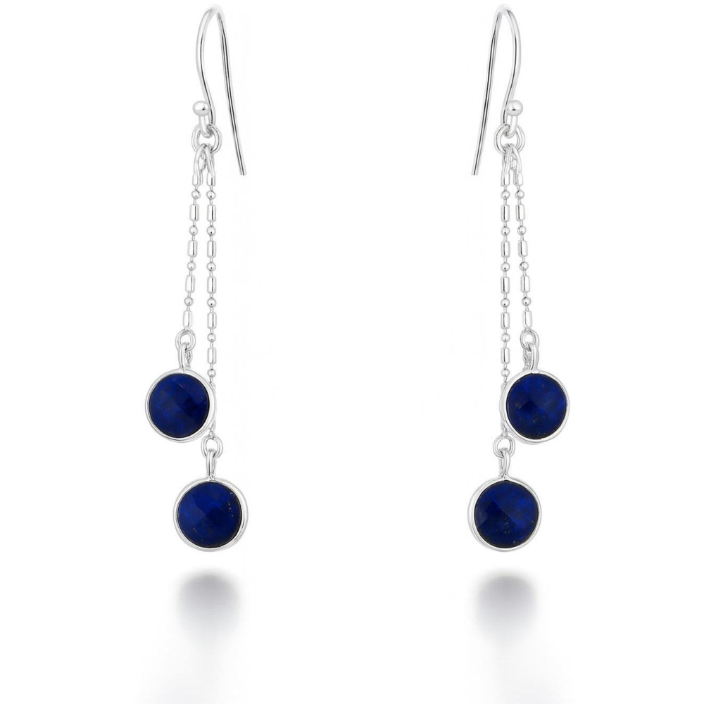 Le lapis lazuli vient orner chaque motif rond, il est taillé en facette et sa belle couleur vive accompagne parfaitement la monture entièrement en argent.