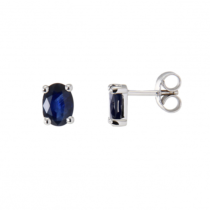 Boucles d'oreilles Or Blanc 750 Saphir Ovale 7x5mm - Ref : 38415