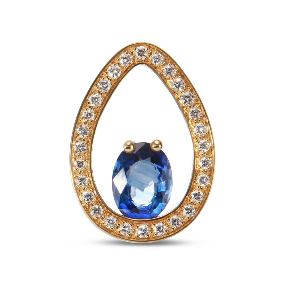 Pendentif en Or Jaune 750 serti d'un saphir de Ceylan ovale de 8x6mm et de 28 diamants de 1,4mm