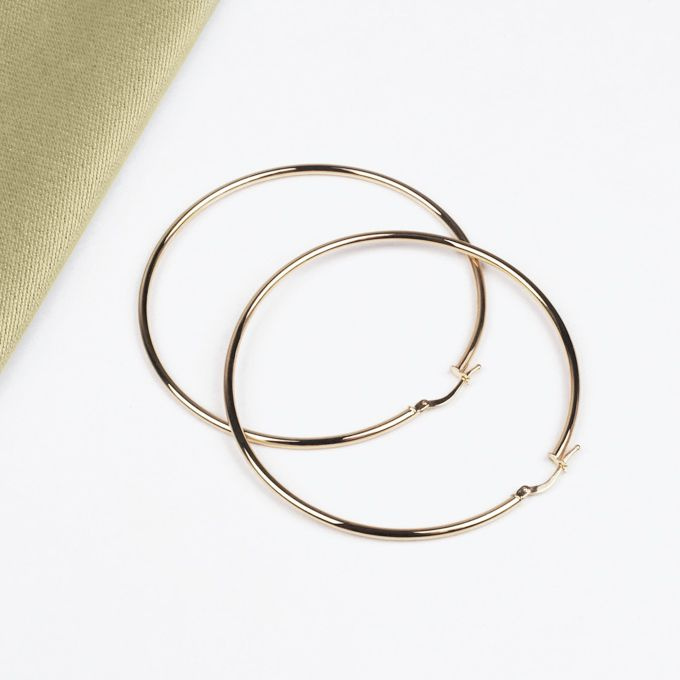 Ces créoles ont été faites en or jaune 9 carats. On aime particulièrement leur aspect simple et épuré. Les boucles d'oreilles sont formées d'un anneau mince à section ronde et bombée. Leur diamètre total est de 60 mm. Sa forme circulaire et sa surface scintillante plairont aux femmes modernes qui pourront le porter à toutes les occasions .