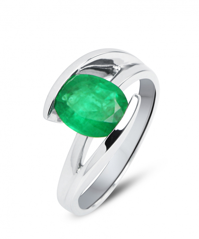 Bague en Or Blanc 750 sertie d'une Emeraude ovale de 9x7mm (1,5 carat)