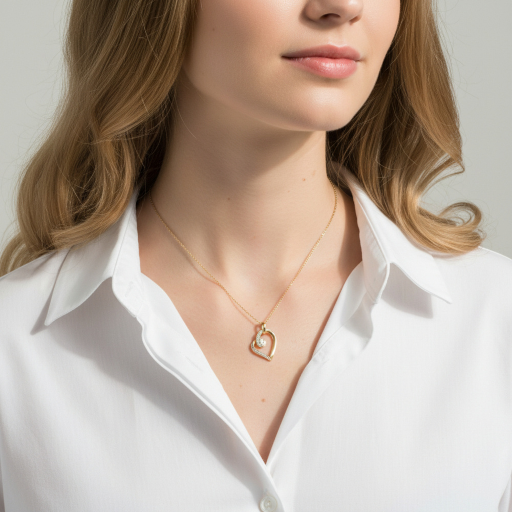 Un beau pendentif en or jaune de 18 carats en forme de coeur délicatement travaillé par nos bijoutiers, voilà un présent qui peut marquer votre dulcinée. Celui-ci dispose de 11 diamants qui sont installés sur la moitié du bijou pour rajouter une touche de délicatesse à l'ensemble de la création. Ce charmant pendentif peut donner plus de peps à une tenue jugée trop sage ou venir égayer davantage une coquette robe .