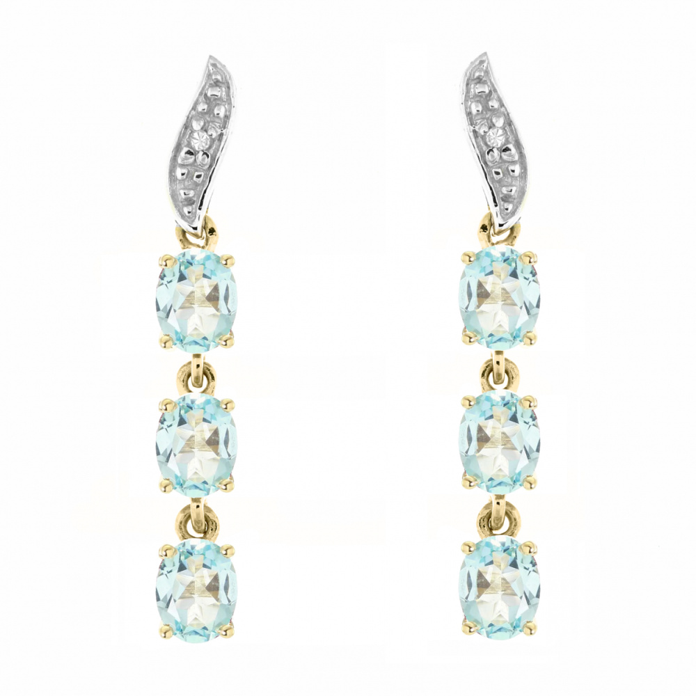 Boucles d'oreilles en Or jaune 375 serties de 6 topazes bleues traitées ovales de 4x3mm et de 2 diamants