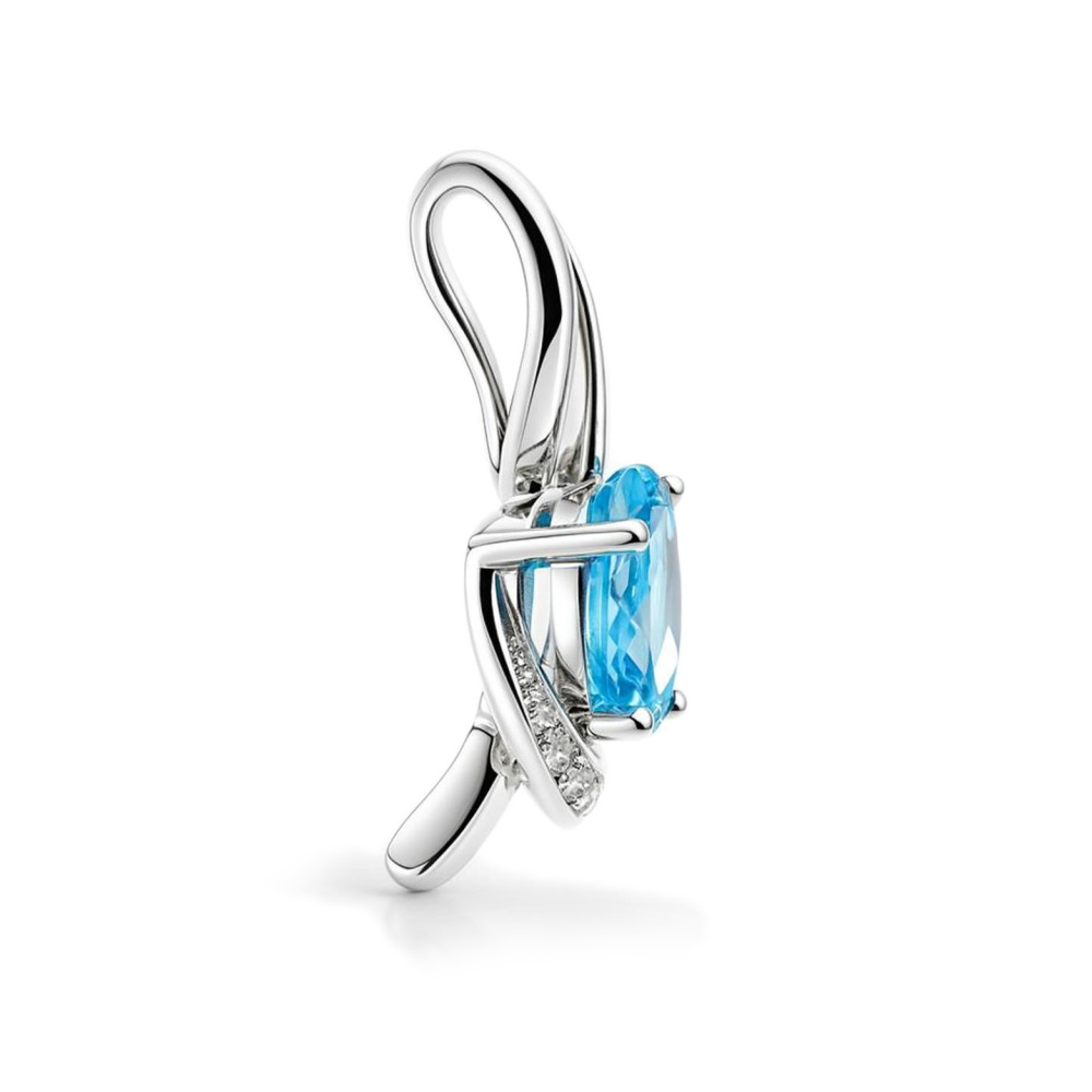 Pendentif en Or blanc 375 serti d'une topaze bleue traitée taille poire de 7x5mm et de 4 diamants