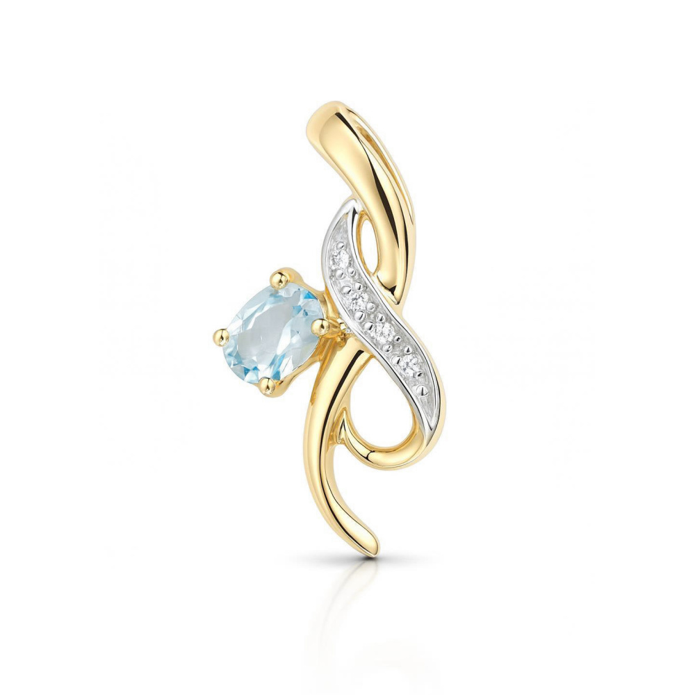 Pendentif en Or jaune 375 serti d'une aigue marine ovale de 5x4mm et de 4 diamants