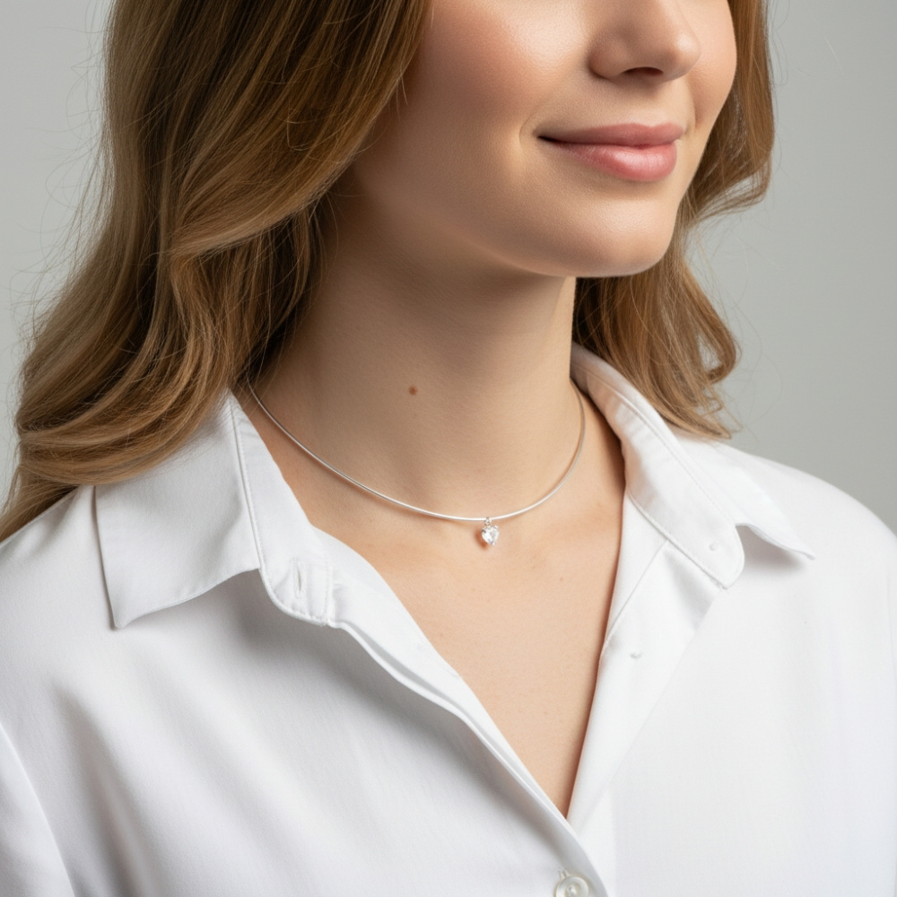 Ce pendentif est serti d'une pierre taille coeur de 8x8mm