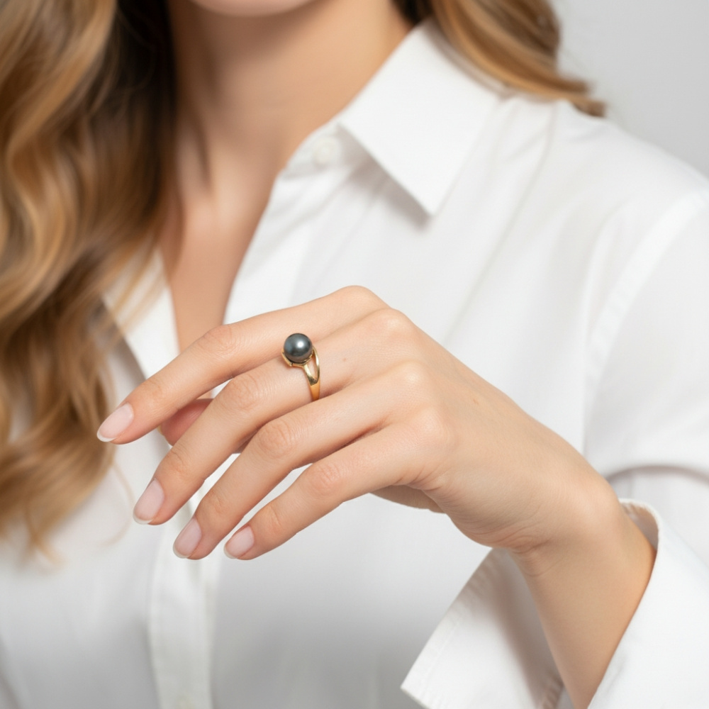 Bague en or jaune 750 sertie d'une Perle de culture Tahiti ronde de 10mm
