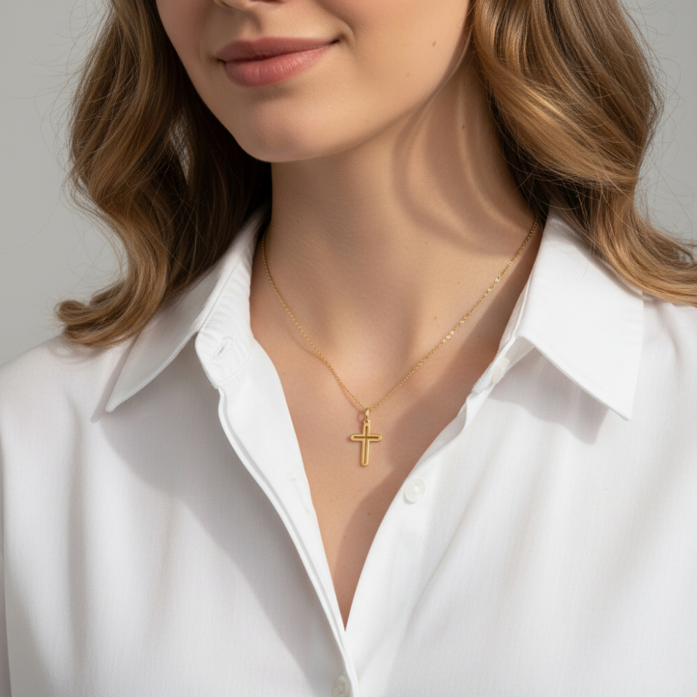Véhiculant un message religieux ou à connotation plutôt rock'n'roll, qu'importe, ce pendentif saura parfaitement rehausser votre allure. Il est en forme de croix entièrement fait d'or jaune. Le centre de la monture est ajouré pour apporter un effet léger et aérien au bijou. Le sommet quant à lui est constitué d'une bélière qui n'attend plus que sa chaine de cou. A porter en toutes circonstances, ce pendentif saura illuminer votre décolleté.