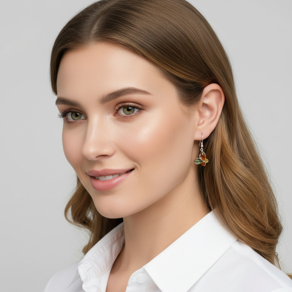 Boucles d'oreilles Papillons Ambre Multicolore et Argent 925