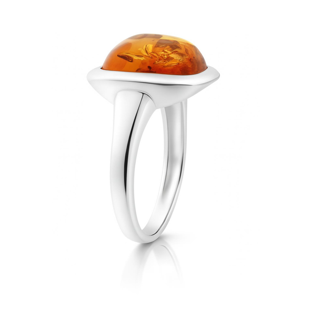 Les femmes adeptes de bijoux imposants seront naturellement sous le charme de cette bague en argent. Ce bijou à l'aura irrésistible se compose d'un ambre taillé en coussin. La pierre fine laissant apparaitre des inclusions naturelles est maintenue sur cette monture épurée. Les lignes bien dessinées de la monture entourant parfaitement la pierre apporte une allure contemporaine à ce bijou. Par ses tons chauds et ensoleillés, cette bague apporte un style pétillant à sa propriétaire .