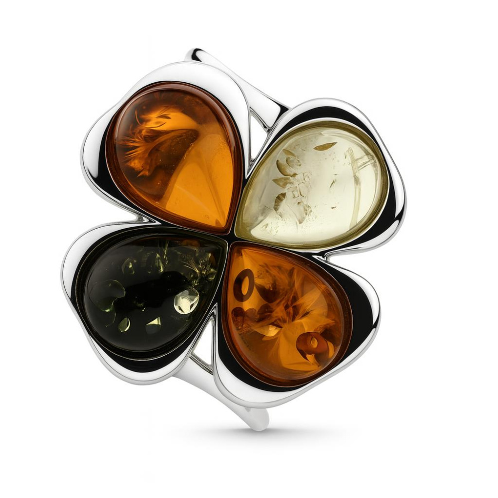 A la recherche d'un cadeau original, choisissez cette ravissante bague au style naturel et coquet. Elle affiche une note multicolore et abrite une jolie fleur créée à partir d'un ingénieux agencement de plusieurs ambres. Les pierres fines taillées en poire se déclinent en couleur verte, cognac ou miel. Cette belle association de couleurs naturelles est en parfaite harmonie avec la monture en argent .