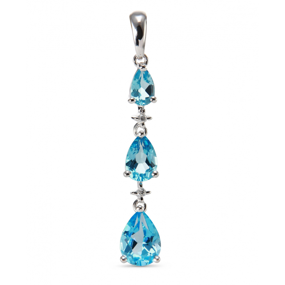 Pendentif Or Blanc 375 Topaze Bleue traitée Poire et Diamant