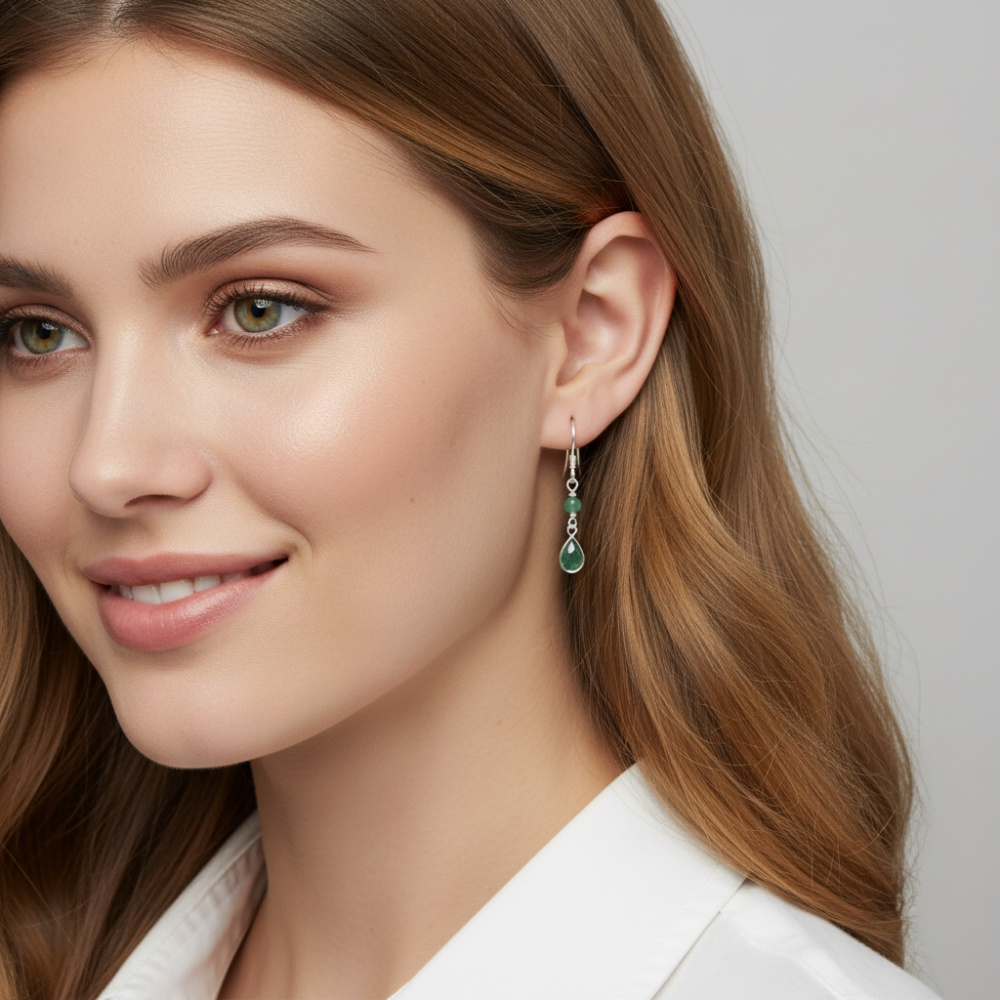 Ces boucles d'oreilles se dénotent par les jolies formes des pierres qui l'agrémentent. La monture de style pendant est composée par un crochet. Une aventurine ronde est fixée à la monture par en haut et en bas puis elle est reliée à la deuxième aventurine par des anneaux. Celle-ci est en forme de poire et elle est logée en serti clos dans un corps qui enveloppe son contour. Apportez de l'élégance à votre tenue en portant ces coquettes boucles d'oreilles en argent.