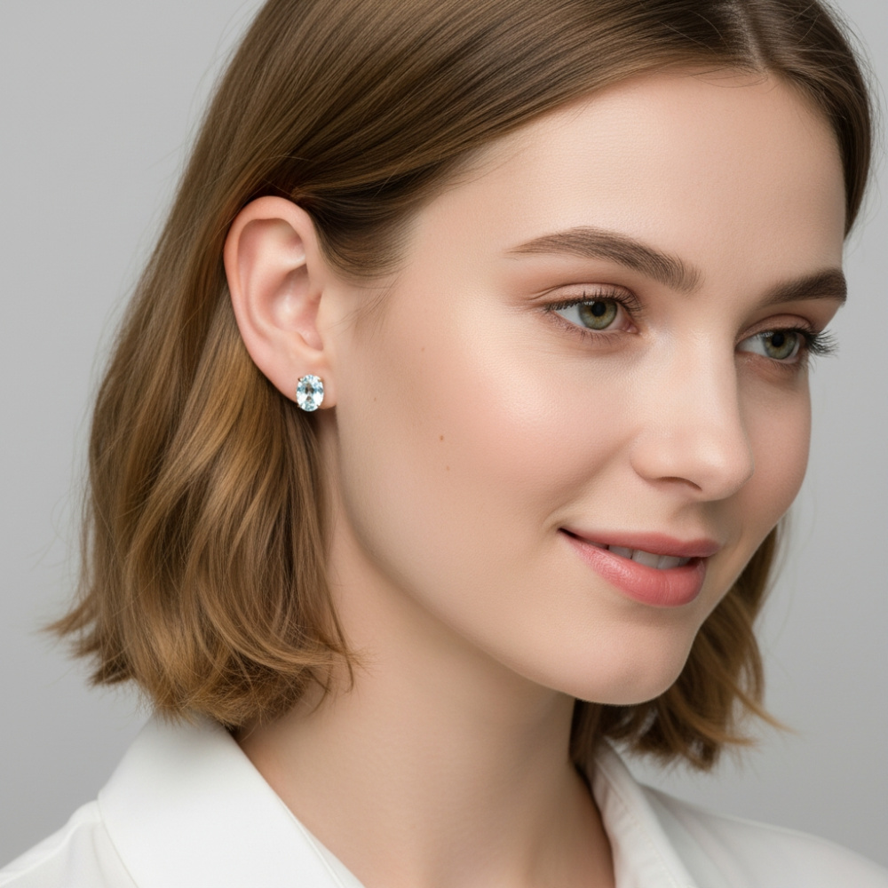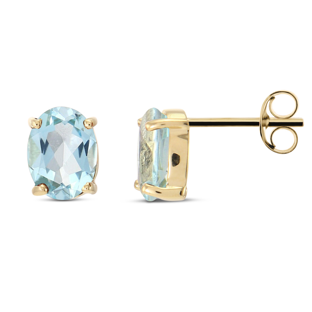 Puces d'oreilles Or jaune 375 Topaze Bleue traitée Ovale 8x6mm