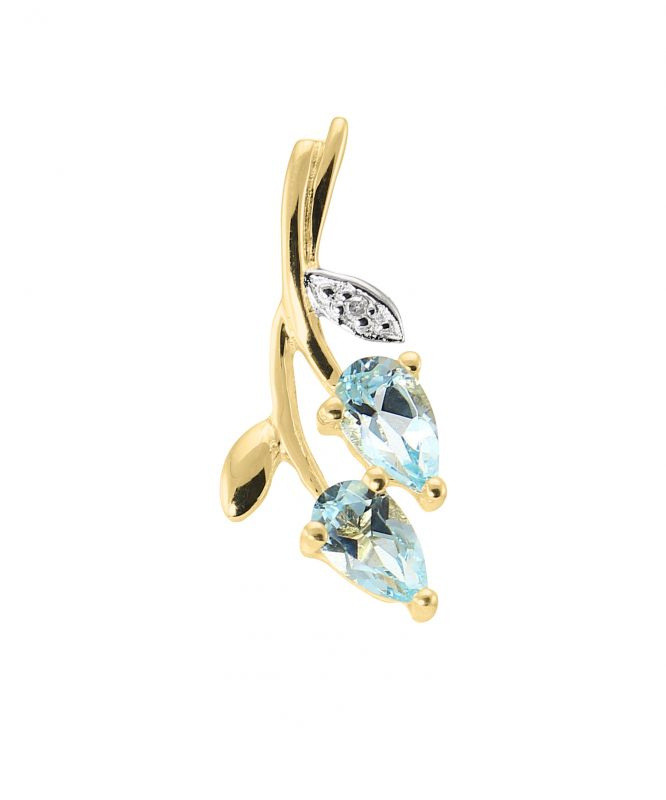 Pendentif Feuille Or jaune 375 Topaze Bleue traitée et Diamant