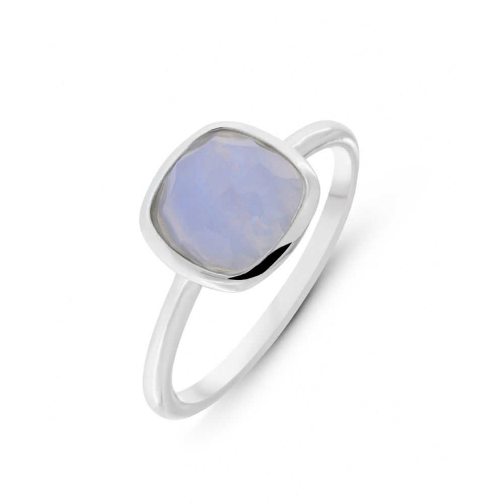 En plus de sa beauté, la calcédoine qui orne cette bague vous protégerait des pensées négatives et insufflerait sur vous un mental positif et confiant. Elle présente une forme carrée, entourée d'un corps en argent rhodié. L'anneau dans le même design que ce corps dessine une ligne régulière et fine et vient se fixer en dessous de ce corps. Son aspect satiné fera briller votre main tout lui insufflant une note de douceur.