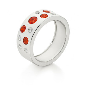 Voici un modèle d'anneau classique pour embellir votre doigt mesdames. C'est une magnifique bague en argent apportant une belle note de modernité. Elle est formée par une boule avec pavage d'oxydes de zirconium qui est maintenue par le corps de l'alliance. Ce beau bijou se porte à merveille pour les grandes occasions grâce à la couleur rouge des pierres serties à griffes. Les extrémités des griffes brillent gracieusement entre les pavés, cette jolie bague est d'un style très féminin .