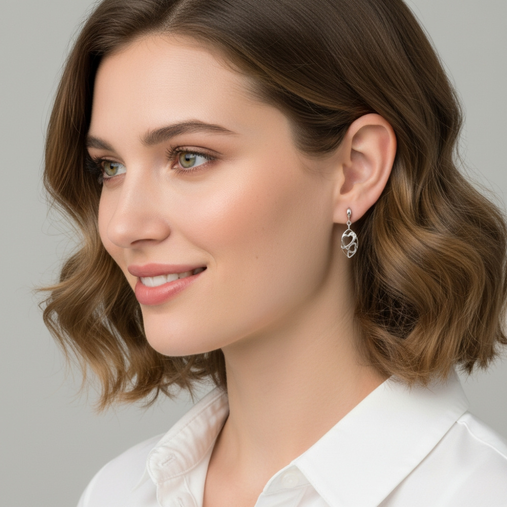 Mettez en valeur votre féminité en vous parant de jolis accessoires. Ici, vous avez des boucles d'oreilles de style pendant. Ils vous plairont pour la petite note de fantaisie qu'elles apportent. La monture dessine deux coeurs entrelacés dans un corps ovale. Les motifs ajourés et la présence de deux oxydes de zirconium sur chaque boucle donnent du cachet à ces jolies bijoux. Pour les parfaire, ils sont munis de poussettes belges pour servir de fermoir.