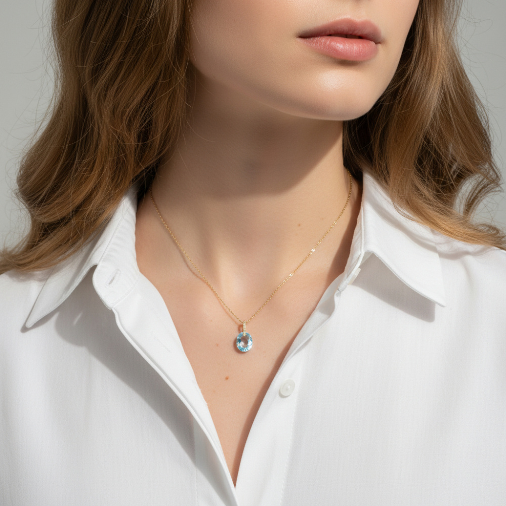 Mesdames, ce bijou pendra agréablement à vote cou grâce à son originalité. C'est un pendentif en or jaune 750 qui vous distinguera lors des événements spéciaux. Il est composé par une topaze bleue traitée, délicatement maintenue à une bélière. Ce pendentif se distingue par sa bélière en or serti de diamant, il vous permettra de rester élégante et dans l'air du temps.